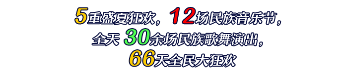 纵情挥洒,泼水狂欢;燃情狂野,火把狂欢;热情洋溢,歌舞狂欢;激情澎湃,音乐狂欢;恣情品味,美食狂欢……