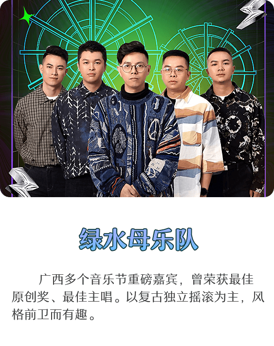 广西多个音乐节重磅嘉宾,曾荣获最佳原创奖、最佳主唱。以复古独立摇滚为主,风格前卫而有趣。