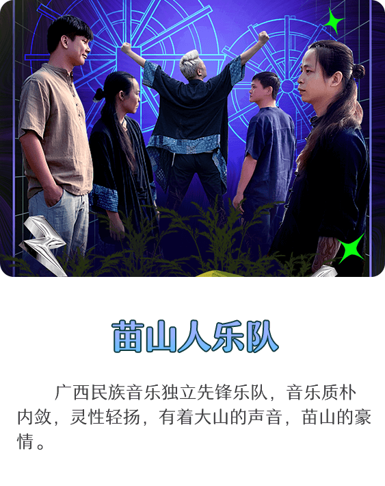 广西民族音乐独立先锋乐队,音乐质朴内敛,灵性轻扬,有着大山的声音,苗山的豪情。