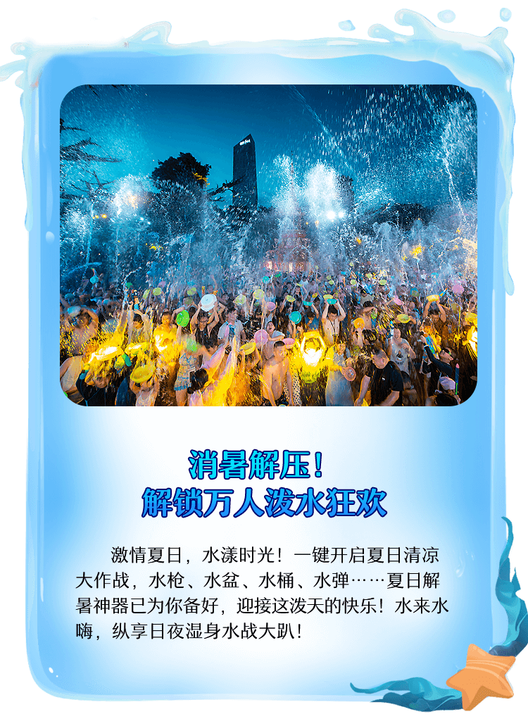 激情夏日,水漾时光!一键开启夏日清凉大作战,水枪、水盆、水桶、水弹……夏日解暑神器已为你备好,迎接这泼天的快乐!水来水嗨,纵享日夜湿身水战大趴!