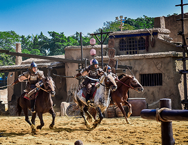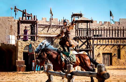 《大漠传奇》是中国首创影视特技实景战马秀。元朝初年,边塞漠城,古丝绸之路上正义战胜邪恶的不朽传奇,续写史诗般辉煌。惊奇震撼的影视特效、动感谐趣的打斗呈现、诙谐幽默的三维互动、战马厮杀的格斗场面、上天入地的蛟龙手法,体现首创精神,挑战观众想象力。驼铃声中的故事、古丝路上的传奇、匡扶正义的壮举、民族团结的颂歌。