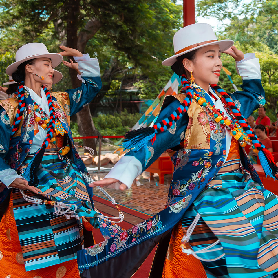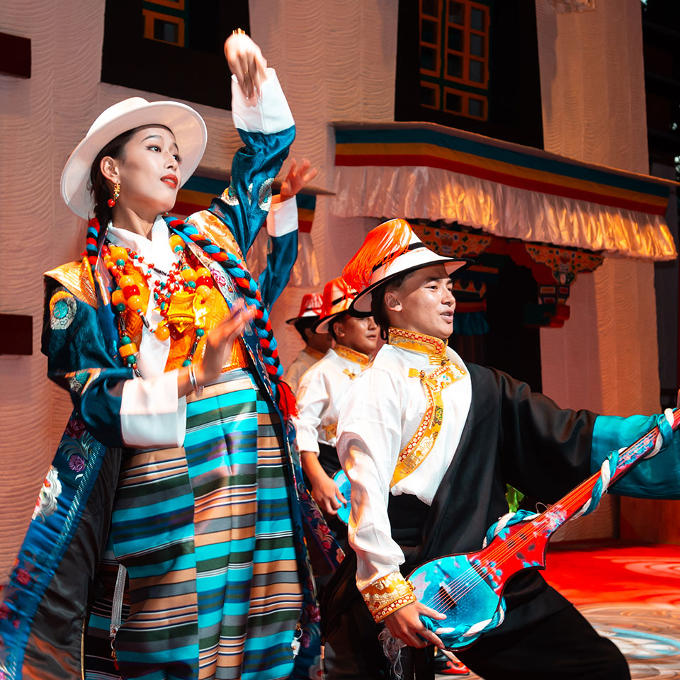 “扎西德勒”是藏语中最美的话语,最好的祝福送给你!锦绣中华 《扎西德勒秀》涵盖了众多藏族传统特色节目如弹拨乐器扎木念、民间礼仪舞蹈古格宣舞、千年传统技艺打阿嘎、藏族民间舞蹈锅庄等等,给您呈现一场沉浸式、超热情的原生态特色藏族歌舞剧。