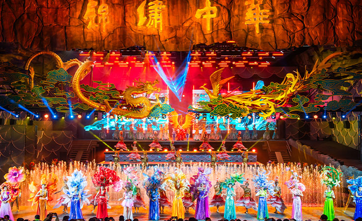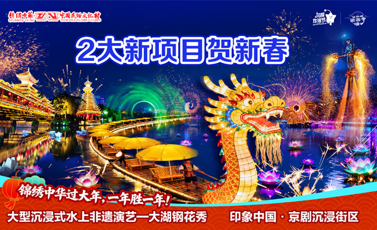 突破!白天与黑夜双线并行,全时段沉浸体验流动的视觉盛宴倒映璀璨华夏文明;联动!非遗与科技激活文明,傩舞、钢花、侗族大歌等多项非遗多维立体展示;重塑!水陆空三维叙事演绎,全感官沉浸体验全景沉浸新剧场打破传统演艺边界;
